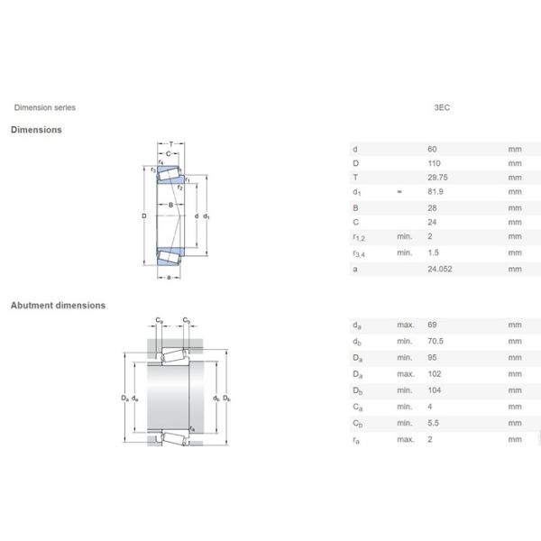 Single Row Taper Roller Bearing NSK HR32212J Bearing is one kind of tapered roller bearing design . Its dimension is 60×110×29.75mm , weight is 1.2kg , the material are adopt high quality chrome steel , this design are separable. the bearing ring with the rollers and cage assembly can be separated from the other ring, so this kind of bearing are the same with single row cylindrical roller bearings.